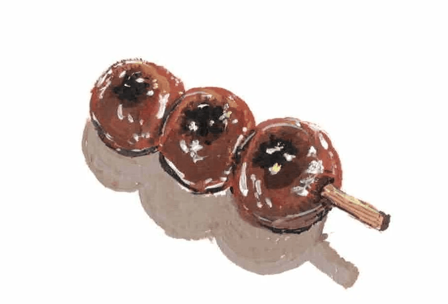 Water based gouche on watercolor paper. Still life painting of a dango shaped trinket.